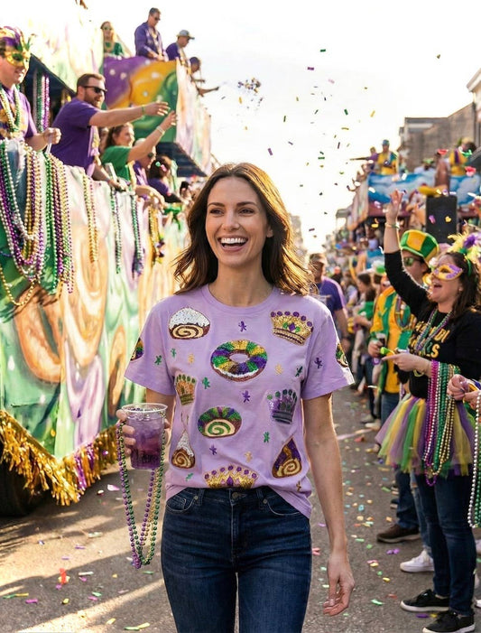 Mardi Gras Sequin Embroidered King Cake T Shirt