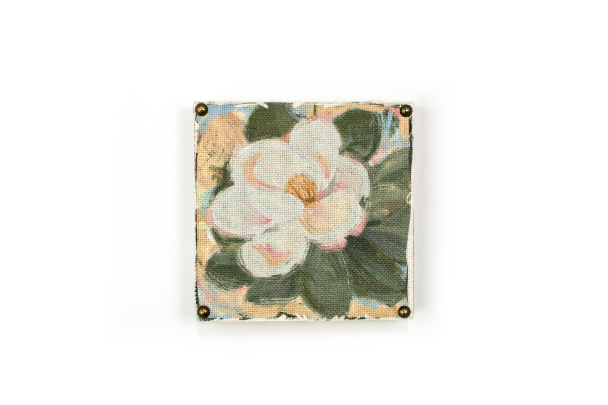 This square Magnolia art block is made of wood and finished with a printed fabric design affixed to the block. The artwork features the Louisiana State Flower, the Magnolia, showcasing the state’s natural beauty.