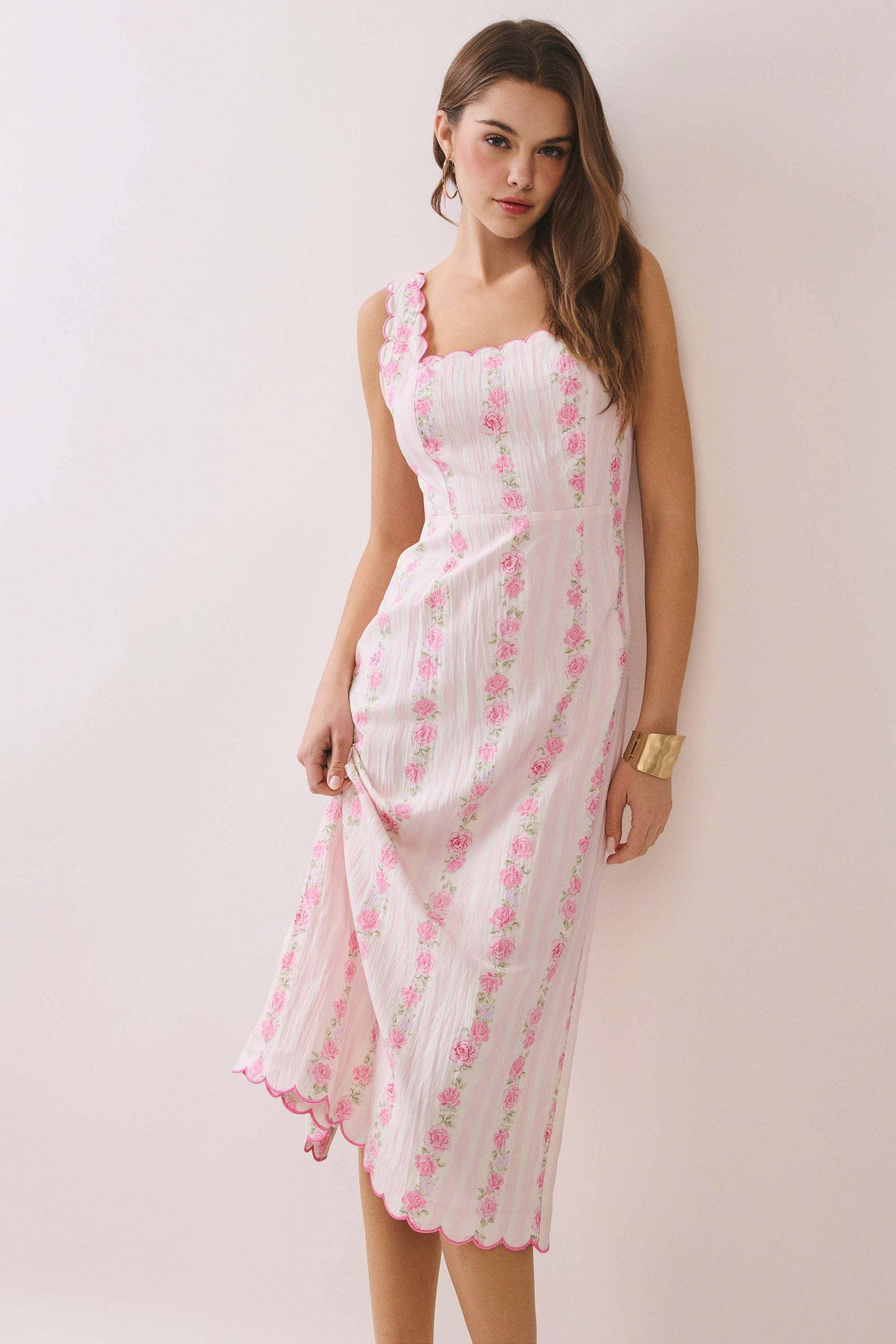 Blush Bloom Scalloped Midi