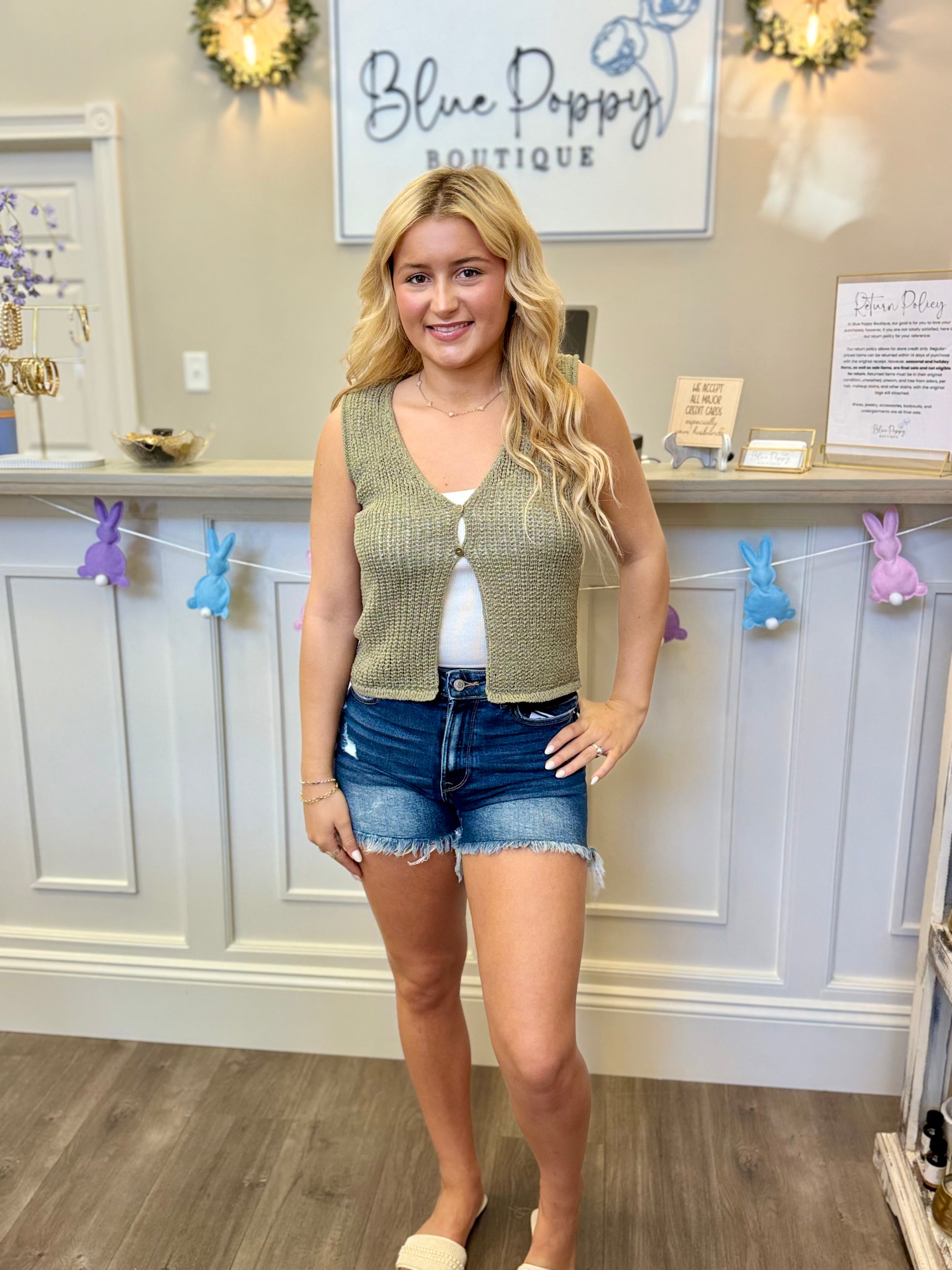 Front Button Crochet Knit Vest