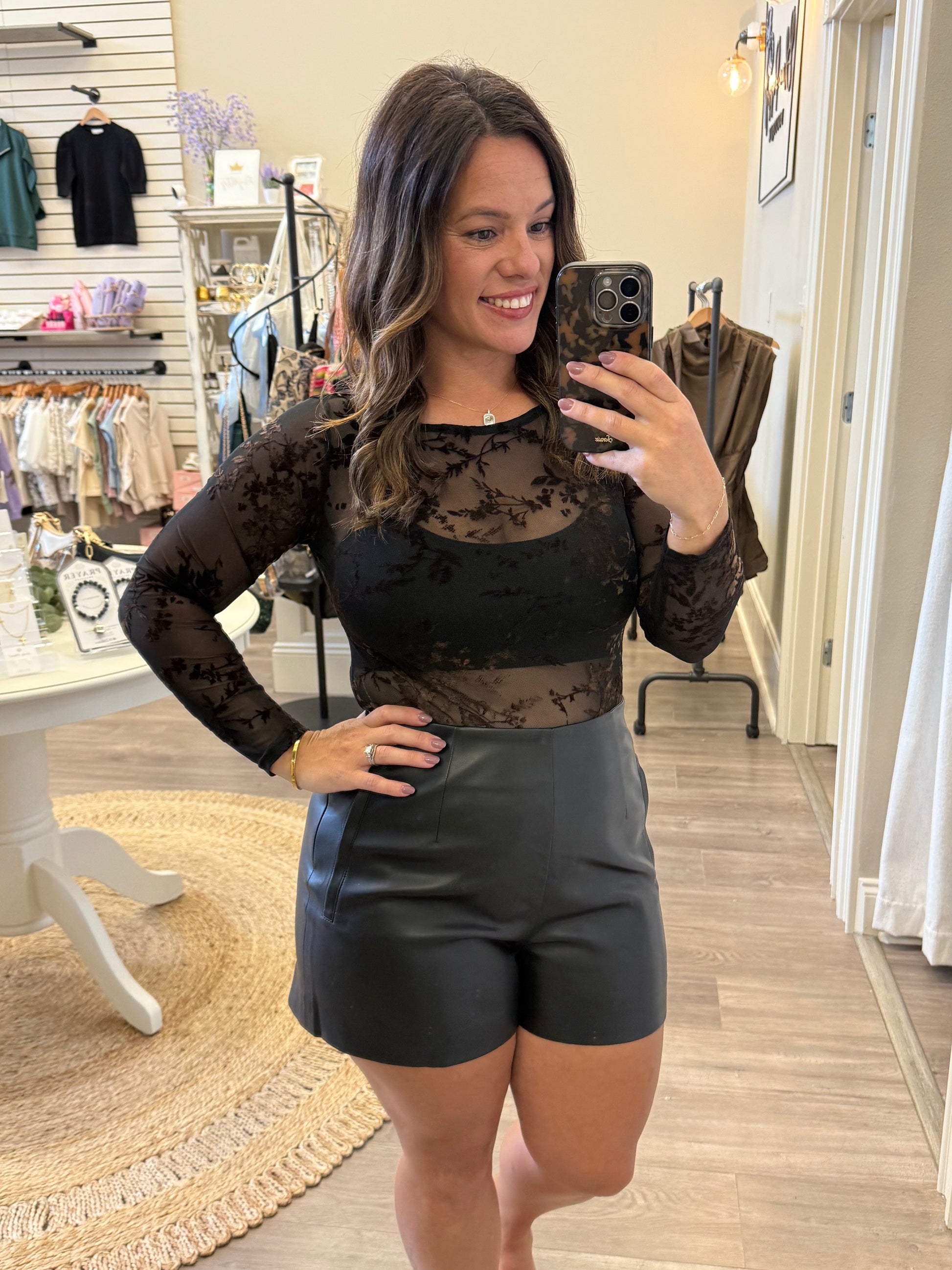 Turn heads in this sheer mesh bodysuit featuring a soft nude base with delicate golden floral embroidery. With long sleeves and a flattering boat neckline, it’s perfect for layering under blazers or pairing with high-waisted denim for a sleek, romantic look.