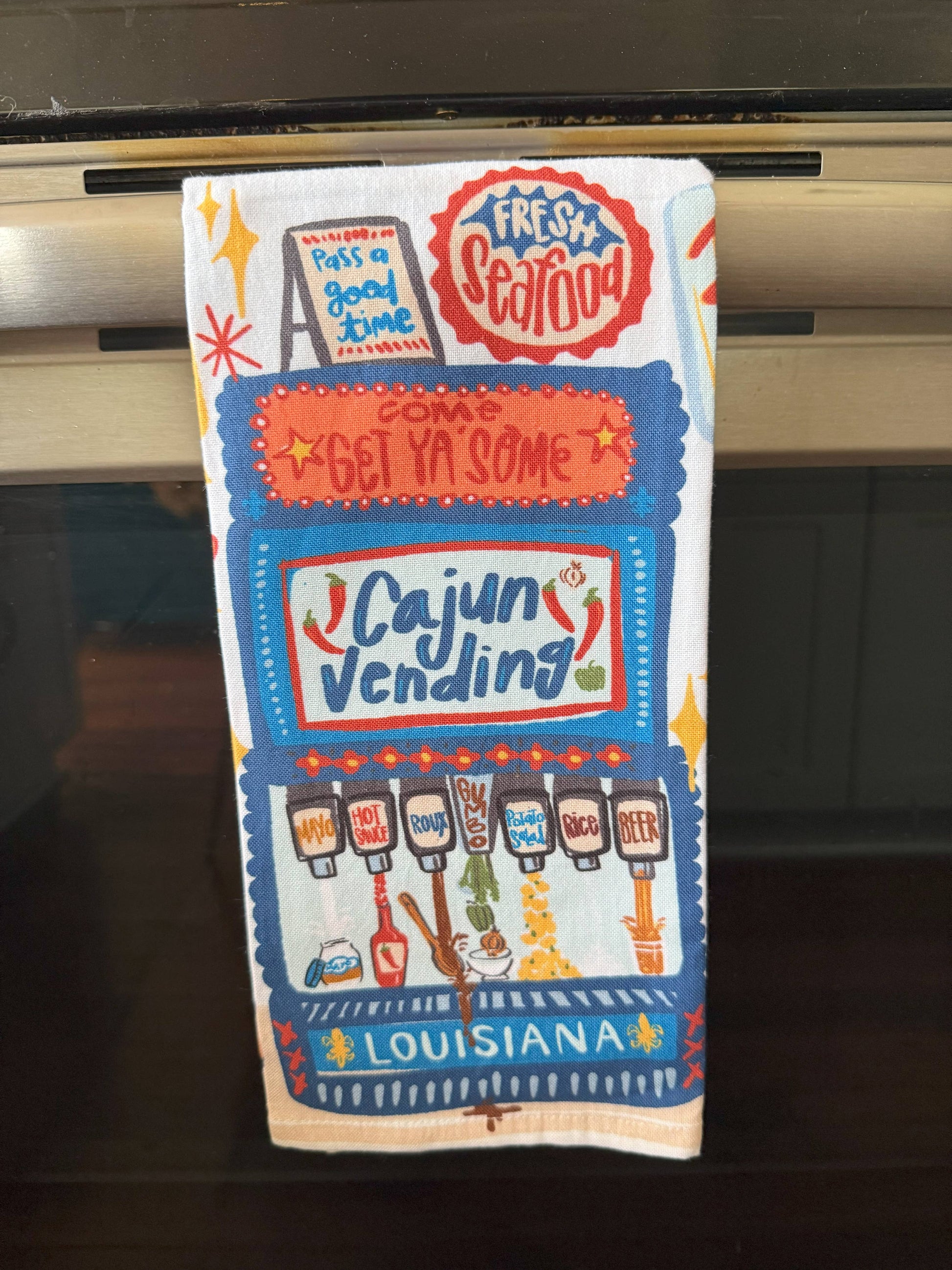 Our Cajun Vending Machine Kitchen Towel is perfect for: