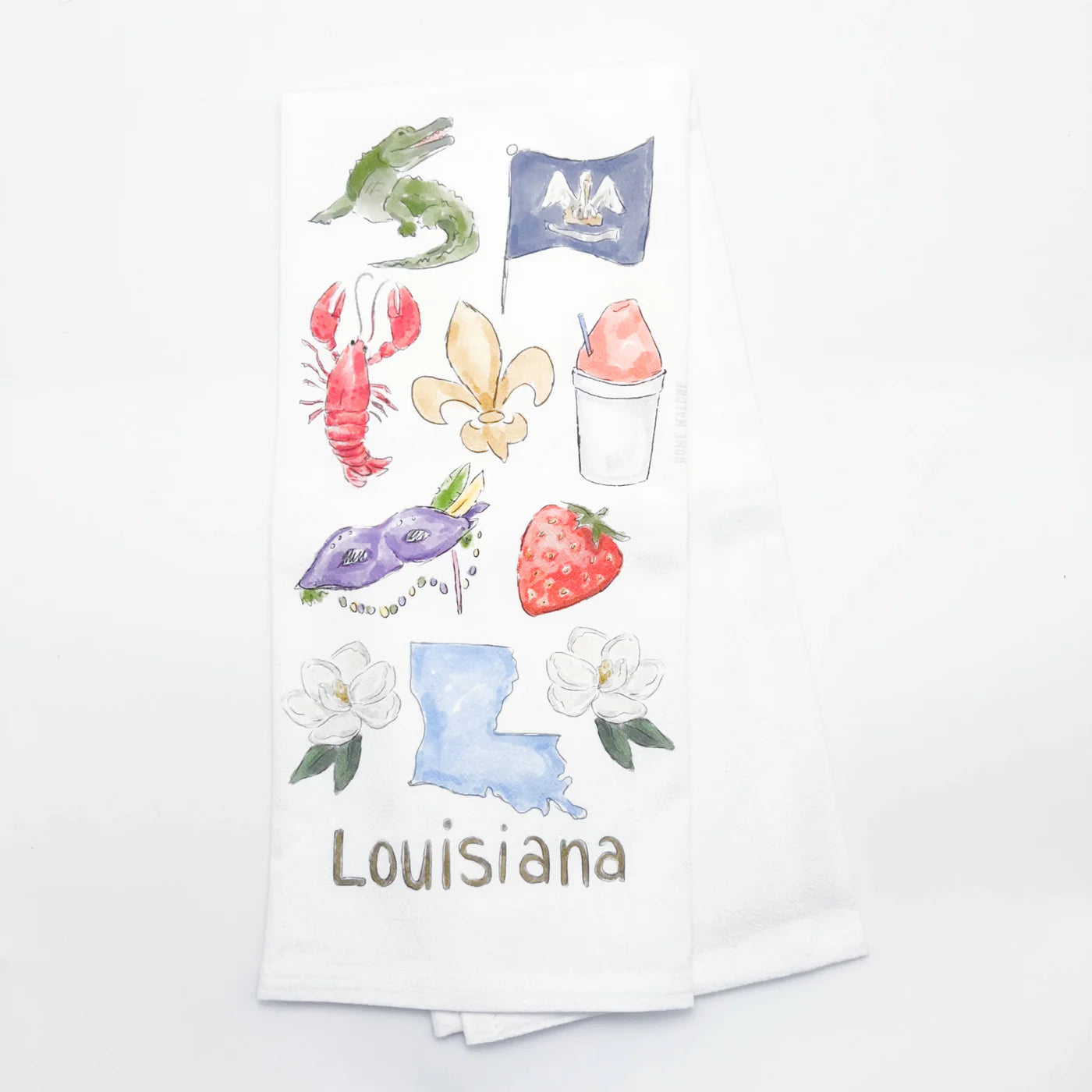 Bring a touch of Southern charm to your kitchen with this Louisian Icons Tea Towel, featuring a vibrant all-over print of the state’s most beloved symbols. From crawfish to alligators, sno-balls to Mardi Gras masks, and the iconic fleur-de-lis, this towel captures the lively spirit and cultural richness of Louisiana on a crisp white background.