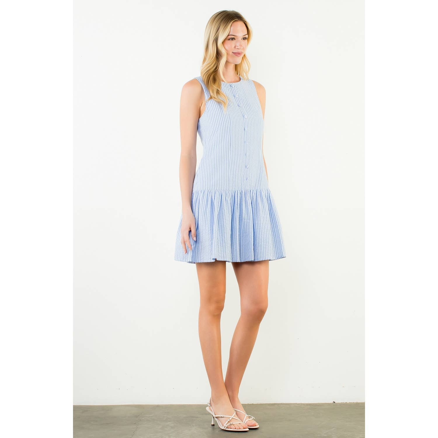 Sleeveless Striped Button Front Dress