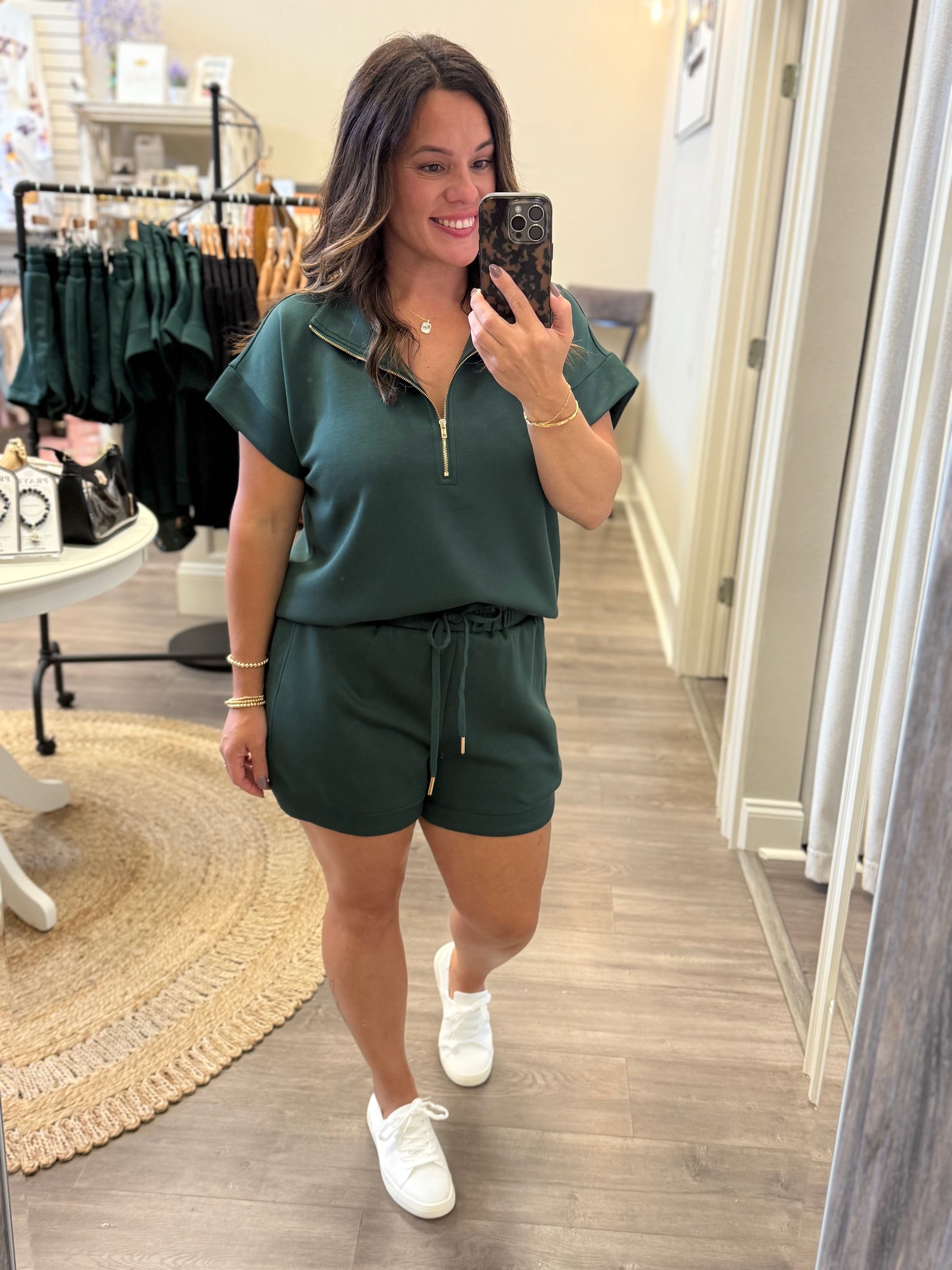 Casual chic meets everyday comfort in our Luxe Zip Lounge Set. This stylish two-piece features a short-sleeve, zip-front pullover with a high neckline and relaxed fit, paired with matching high-waist shorts designed with side slits and pockets. Made from a soft, lightweight knit blend of rayon, cotton, and spandex, it’s breathable, stretchy, and non-sheer—perfect for staying polished whether you’re running errands, lounging at home, or stepping out in casual style.