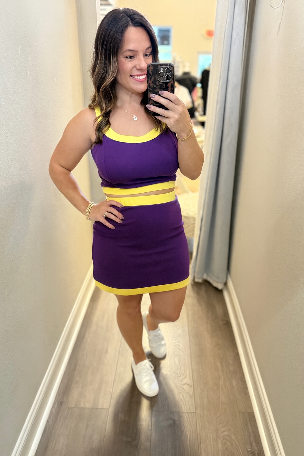 Bring the energy this season in our Victory Vibes Set! πŸ™Œ For just $43, this matching two-piece is bold, comfy, and perfect for showing your LSU pride. Style it casual or dressy β€” either way, it’s a game day win. πŸ’œπŸ’›